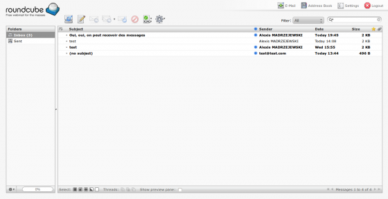 Maintenant il ne vous reste plus qu’à tester Roundcube en envoyant un email de test et en testant l’imap en donnant l’adresse email virtuelle que vous avez configuré précédemment avec le mot de passe sur le serveur 127.0.0.1.